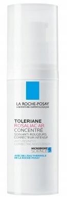 LA ROCHE-POSAY TOLERIANE ROSALIAC AR CONCENTRATE – унікальний дермокосметичний засіб, який є інтенсивним доглядом за шкіра, схильна до акне, почервоніння, розацеа та капіляри. Забезпечує негайну коригувальну дію та запобігає почервонінню та його повторній появі. Унікальна формула Toleriane Rosaliac AR Concentrate збагачена екстрактом (Sphingobioma), (neurosensin) із заспокійливою дією, (масло ши), яке сприяє відновленню захисного бар’єру шкіри, та (термальна вода La Roche-Posay) з заспокійливий, заспокійливий і пробіотичний ефект., який забезпечує ефективну дію проти почервоніння шкіри. Крім того, препарат містить спеціально підібрані зелені пігменти з властивостями коригування почервоніння.