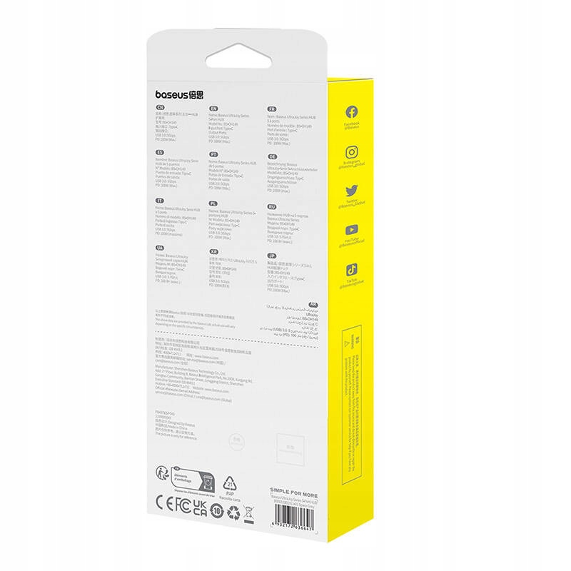 Baseus BS-OH149 — це концентратор, оснащений чотирма надшвидкими портами USB-A та портом USB-C PD, максимальна потужність зарядки яких становить до 100 Вт. Пристрій сумісний із багатьма пристроями, такими як Huawei, Acer, HP, Lenovo та іншими ноутбуками, а також із 4 операційними системами, тому ви можете розширити можливості своїх пристроїв і передавати файли зі швидкістю до 5 Гбіт/с. Елегантний мінімалістичний корпус не тільки стильний і легко чиститься, але також відповідає за належне розсіювання тепла.
