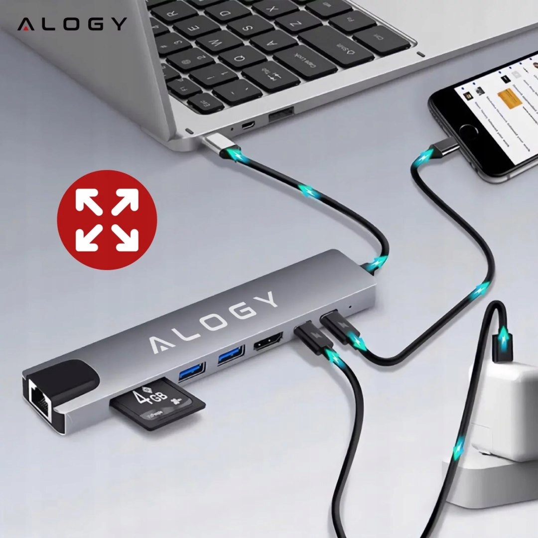 Hub 8in1 USB-C to 2xA+2xC+HDMI+SD+Micro+LAN 100mb - Alogy MultiHub™ For Notebook Laptop