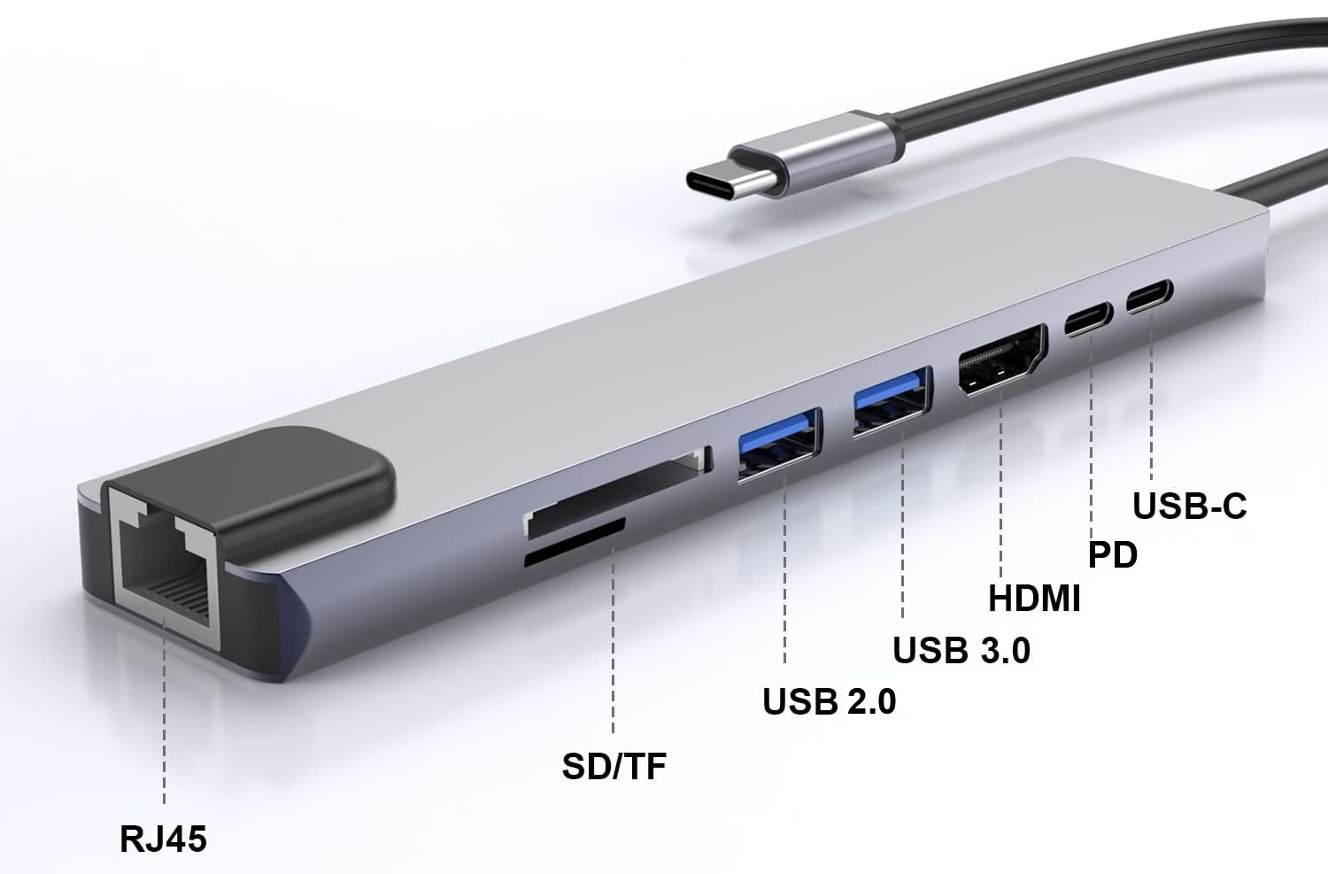 Концентратор 8 в 1 USB-C HDMI 4k RJ45 USB 3.0 USB 2.0 SD microSD 68 Вт PD, адаптер USB-C