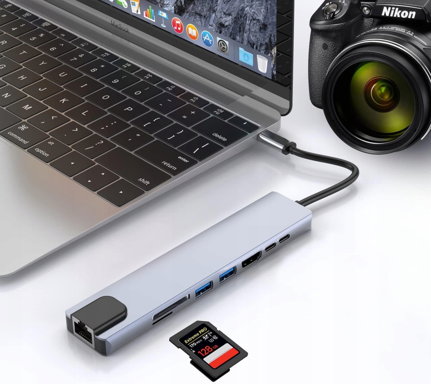 Адаптер USB-C Hub 8-in-1 — це надійний інструмент, який добре працюватиме як на роботі, так і під час розваг, забезпечуючи повну функціональність та ефективність у щоденному використанні.