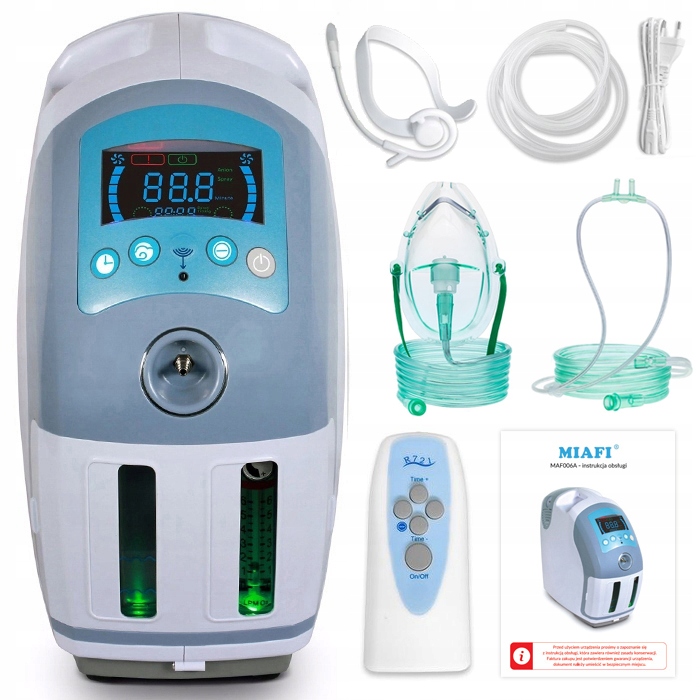Кисневий концентратор – це пристрій для постійної подачі повітря з підвищеним вмістом кисню. Домашній кисневий концентратор створений для домашньої кисневої терапії. Цей легкий, портативний і мобільний пристрій, безсумнівно, повинен бути в кожній домашній аптечці. Його легка конструкція (6,8 кг) дозволить легко носити куди завгодно. Потік кисню 1-6 л/хв. Апарат забезпечує регуляцію концентрації кисню на рівні 30-90%, тому його слід застосовувати згідно з інструкцією лікаря. Характеризується низьким енергоспоживанням 105 Вт і невеликою конструкцієюз розмірами 360x203x364 мм.