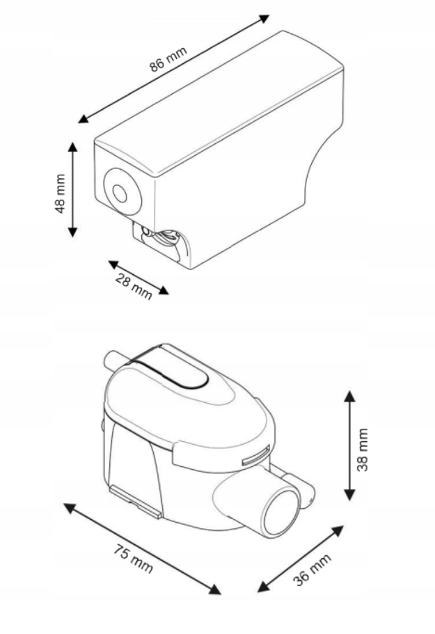- Розміри насоса (висота x ширина x довжина): 48 мм x 86 мм x 300 мм