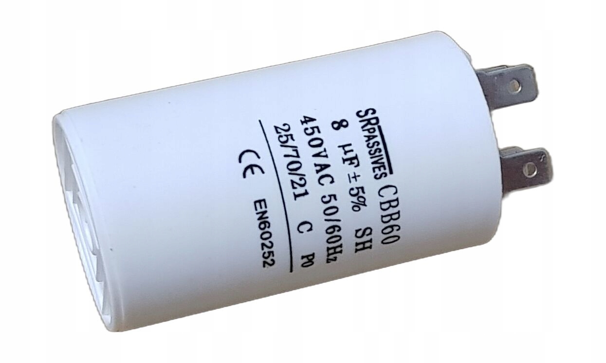 Конденсатор запуску двигуна 8uF 450V CBB60 SRP пасивні контакти