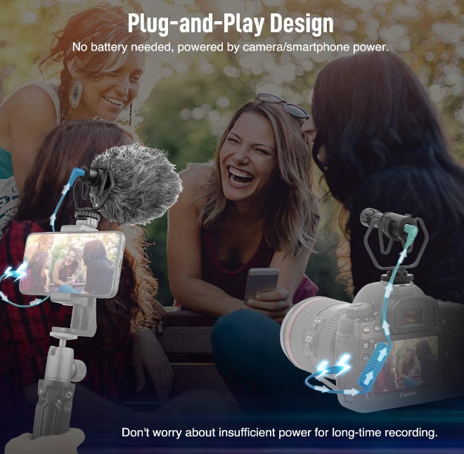 Технологія з низьким рівнем шуму: створений із високочутливим конденсатором і міцним металевим корпусом, цей мікрофон має сильні властивості захисту від перешкод і відтворює чистий звук. Для зменшення шуму від вітру встановлено пухнасте лобове скло, що забезпечує якість запису навіть у шумному середовищі.