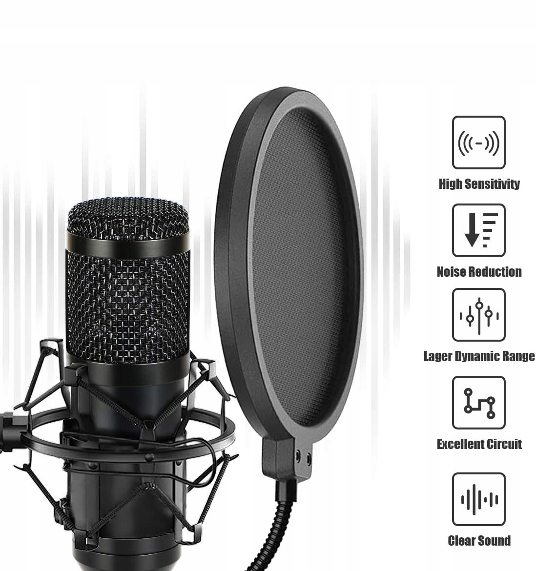 - 16-мм електретний перетворювач і кільцевий магніт: за допомогою 16-мм електричного конденсаторного перетворювача USB-мікрофон може відтворювати потужні баси. Цей професійний конденсаторний мікрофон записує кристально чистий звук. Магнітне кільце кабелю USB-мікрофона оснащено ефективною функцією захисту від перешкод.