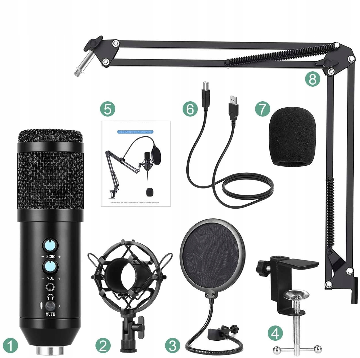 USB-мікрофон, професійний конденсаторний мікрофон, мікрофонний набір із кронштейном для мікрофона, ігровий мікрофон, мікрофон для ПК, для потокового передавання, подкастів, комп’ютерних ігор, YouTube