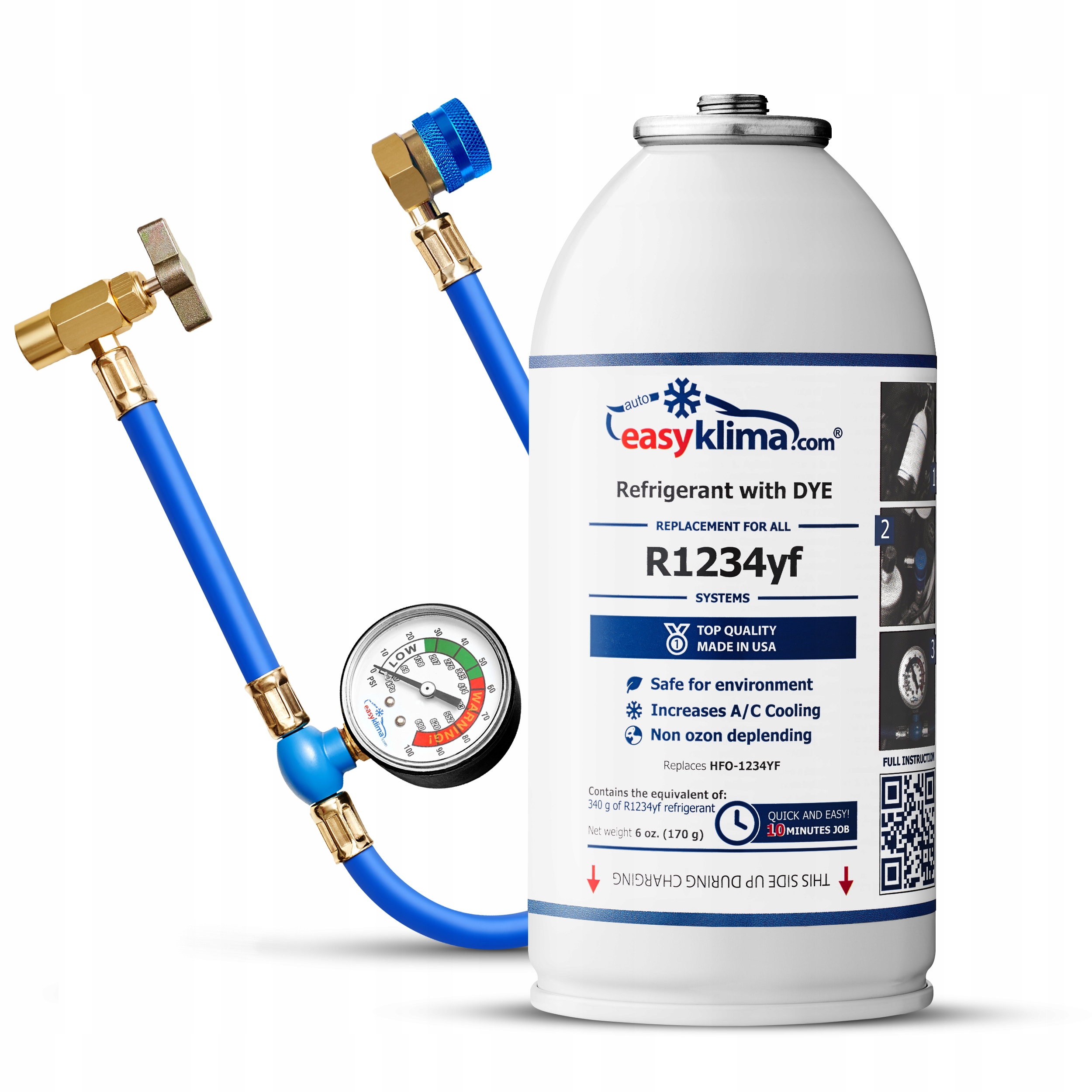 Газ, що входить до набору, є безпечною заміною для холодоагенту R1234YF, що дозволить вам швидко та простого кондиціонування.