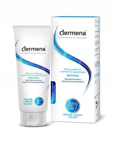 Дерменена® Кондиціонер гальмує випадання волосся, стимулює ріст волосся. Кондиціонер для волосся Dermen® - це інноваційний продукт, розроблений для зміцнення сухого, ослабленого та випадання волосся. Унікальне поєднання поживних речовин і згладжування зміцнює волосся та відновлює його структуру кератину. Запатентована активна речовина вітамінного походження зміцнює волосяні фолікули, покращує його харчування та захищає від роздратування. Він уповільнює процес випадання волосся і відновлює природний баланс шкіри голови. Кондиціонер Dermena® не обтяжує волосся. Дає м'якість волосся, гладкість і блиск, полегшує розчісування.