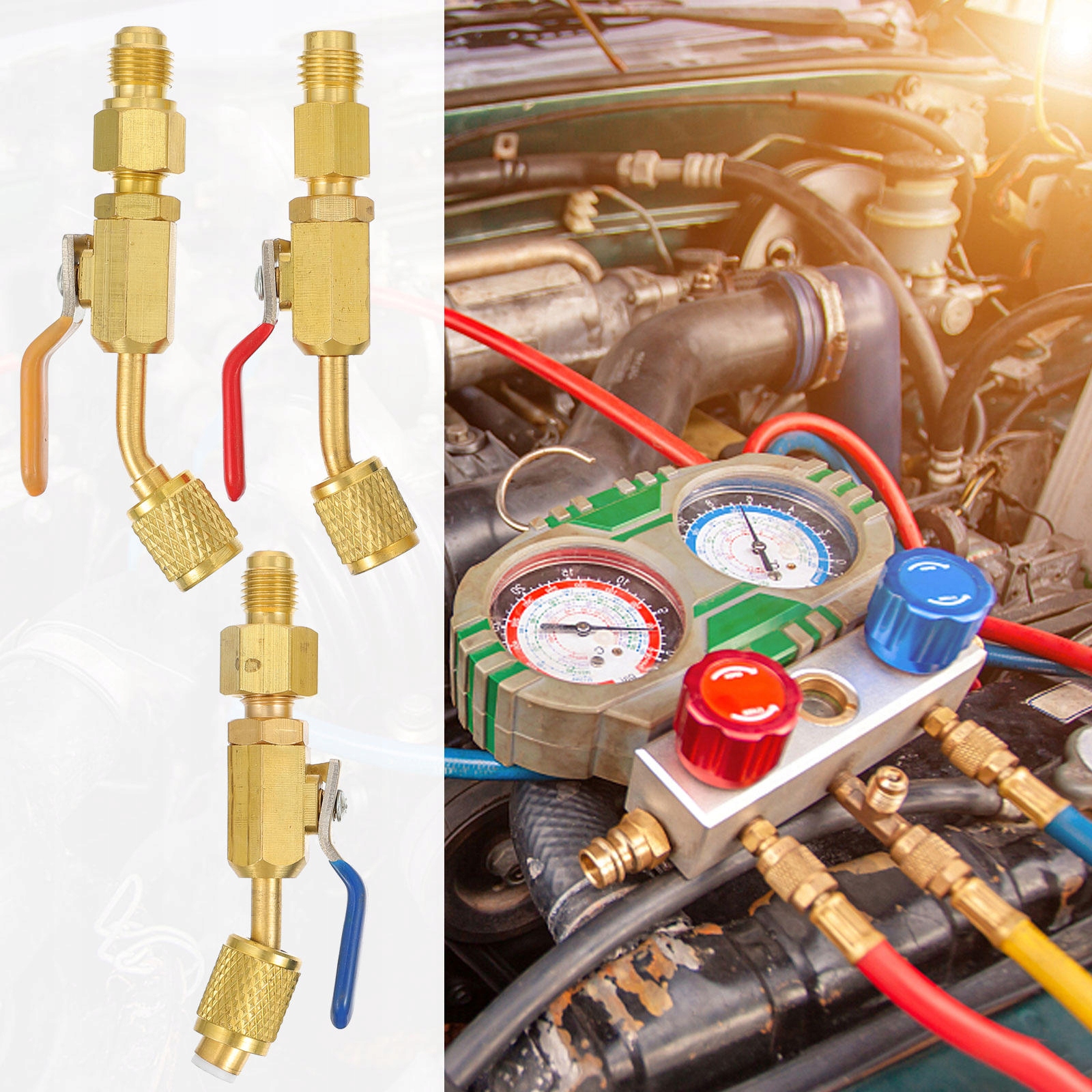 ✅ проводиться з латунних клапанів з високою міцністю на розрив і в той же час, стійкий до корозії. Холодильник R134A, R410A та заряджання шлангів або колектора, корисні інструменти для обслуговування ОВК, кондиціонер автомобілів ().