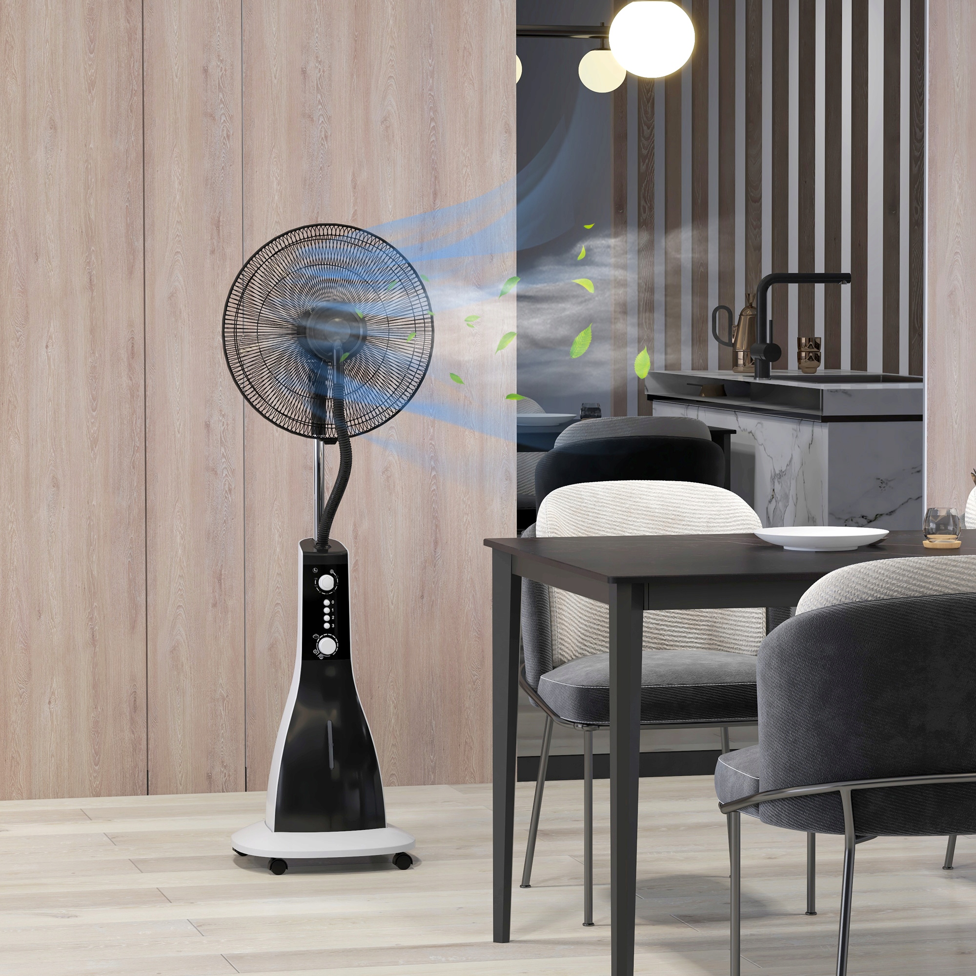 Відчуйте свіжий вітер із підлоговим вентилятором HOMCOM із функцією водяного охолодження. Незалежно від того, чи використовується разом чи окремо, 3 швидкості вентилятора та регульований рівень туману забезпечують індивідуальний комфорт. Завдяки діапазону обертання вентилятора туману 75° і куту нахилу 15° ви можете повністю розслабитися в спекотні дні. Великий резервуар для туману забезпечує до 13 годин безперервної насолоди від туману, що робить його освіжаючим компаньйоном у приміщенні.