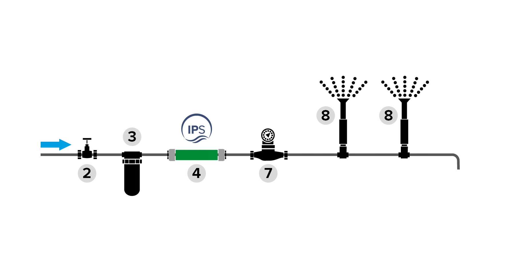 При установці IPS необхідно розташувати пристрій у напрямку течії води (FLOW DIRECTION), що вказано стрілками на корпусі IPS.