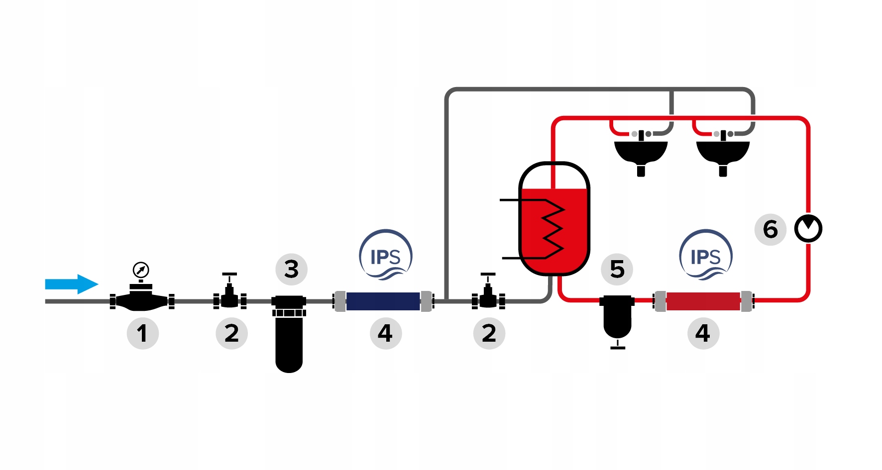 Пристрій призначений насамперед для контурів гарячої води, зокрема для захисту опалювальних котлів, баків для води та проточних нагрівачів. Щороку в наших системах гарячого водопостачання утворюється від 6 до 12 мм накипу. Використання IPS K?l??X RedLine і BlueLine Домогосподарства, громадські заклади, ресторани, готелі, виробничі та сервісні підприємства. IPS працює надійно, якщо використовується перед теплообмінниками в системах опалення та охолодження (наприклад, кондиціонування повітря).