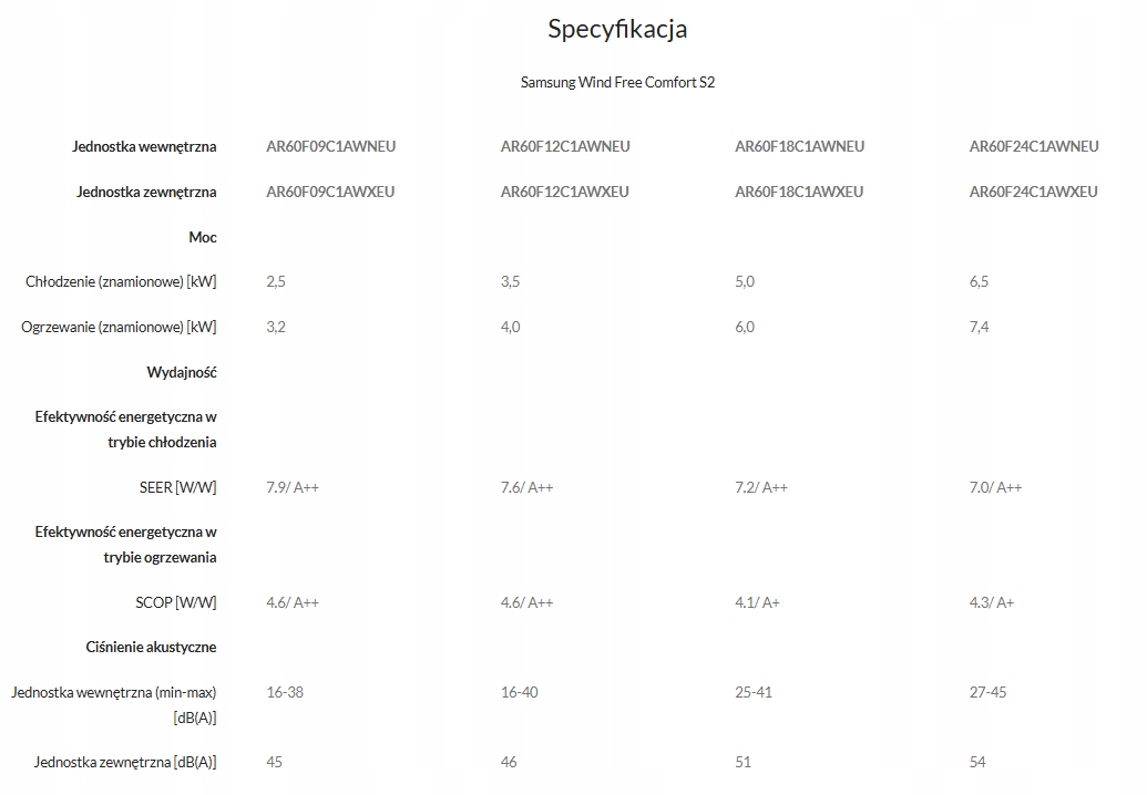 Samsung Wind-Free Comfort S2 — пристрій із серії настінних кондиціонерів корейського виробника. Його характерною особливістю є технологія WindFree™ і 23 000 мікроотворів в корпусі, які зменшують відчуття потоку повітря і роблять техніку надзвичайно тихою - від 16 дБ. Також відрізняється високою енергоефективністю: A++ в режимі охолодження та режимі обігріву, що забезпечує економію енергії при збереженні оптимальної ефективності. Кондиціонер Samsung Wind-Free™ Comfort S2 пропонує функцію AI Auto Cooling, яка інтелектуально підлаштовує режим роботи під умови в кімнаті.
