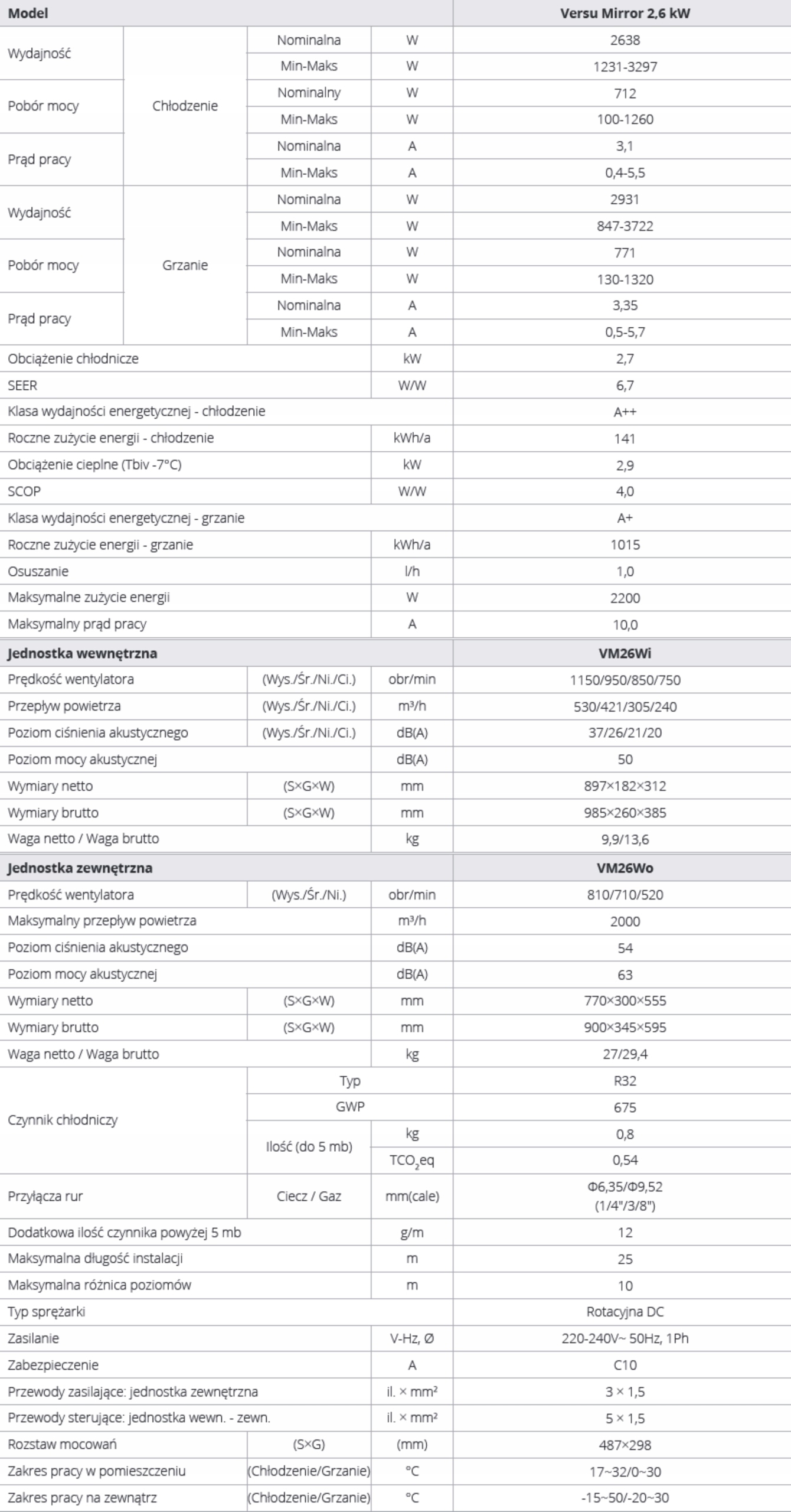Кондиціонер Rotenso VERSU X MIRROR 2,6 кВт