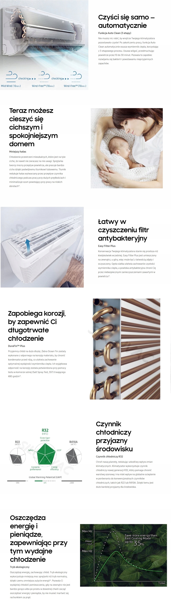 Охолодження за допомогою технології WindFree рівномірно та м’яко розподіляє свіже повітря за допомогою багатьох тисяч мікроотворів, що створює умови «нервного повітря». користувачам комфортно жити, працювати та відпочивати, не відчуваючи дискомфортних потоків холодного повітря