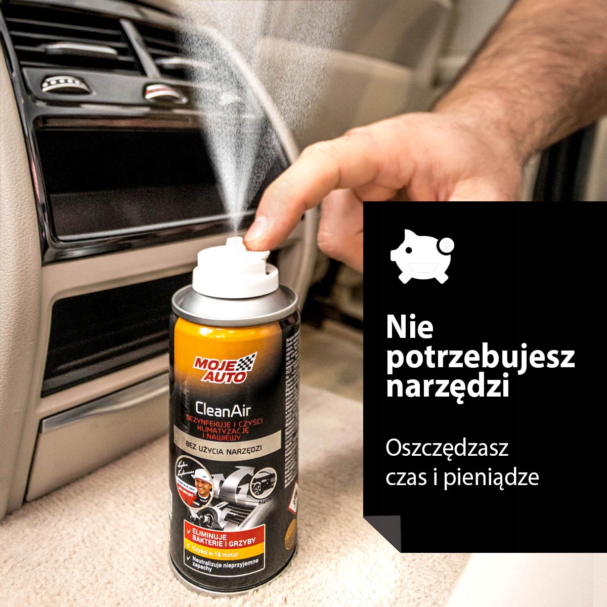 Moje Auto CleanAir - Air Conditioning and Air Vent Refresher - ефективний препарат для дезінфекції вентиляційних отворів і систем кондиціонування повітря в автомобілях. Усуває неприємні запахи, викликані брудом і вологою, забезпечуючи свіжість в автомобілі. Знищує бактерії та грибки. Освіжає салон автомобіля. Речовини, що містяться в препараті, діють ефективно через 15 хвилин.