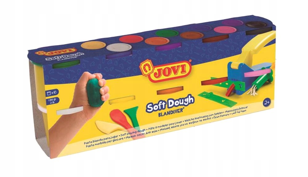 В упаковці 10 контейнерів пластиліну JOVI по 110 г різних кольорів.