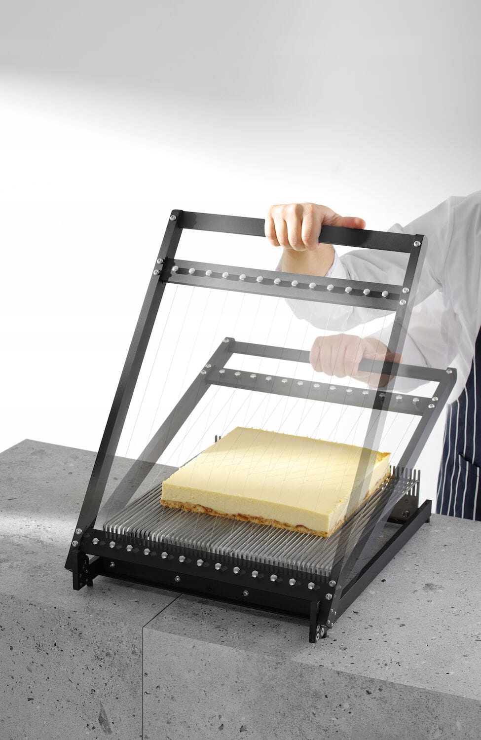Кондитерська одинарна гітара Martellato — інструмент, який використовується для швидкого порціонування та нарізання кондитерських виробів з високою точністю. Слайсер може покращити виробничі процеси в кондитерських, пекарнях і закладах громадського харчування. У набір входить 3 рамки з відстанню струни для різання: 22,5 мм, 30 мм і 45 мм.