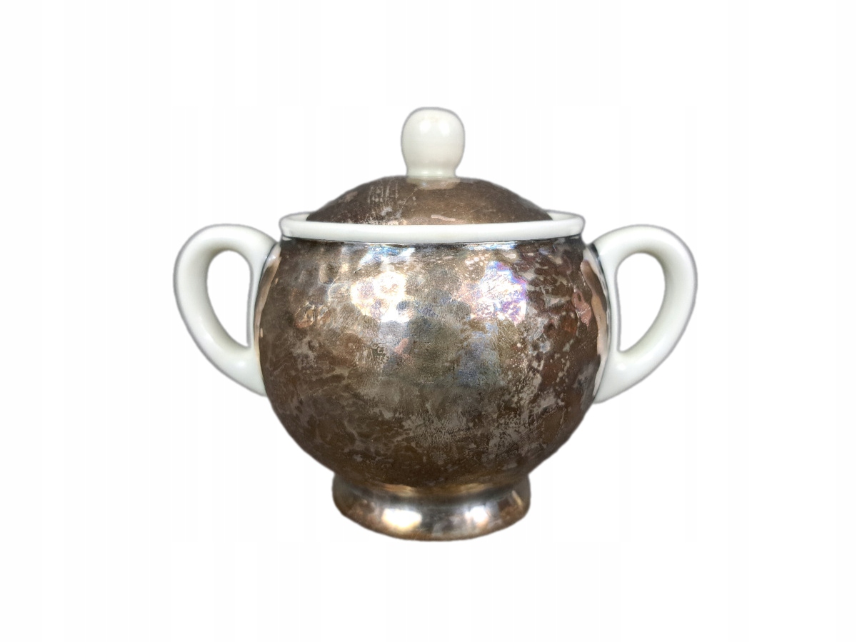Цукорниця порцелянова, латунна фурнітура та покриття.