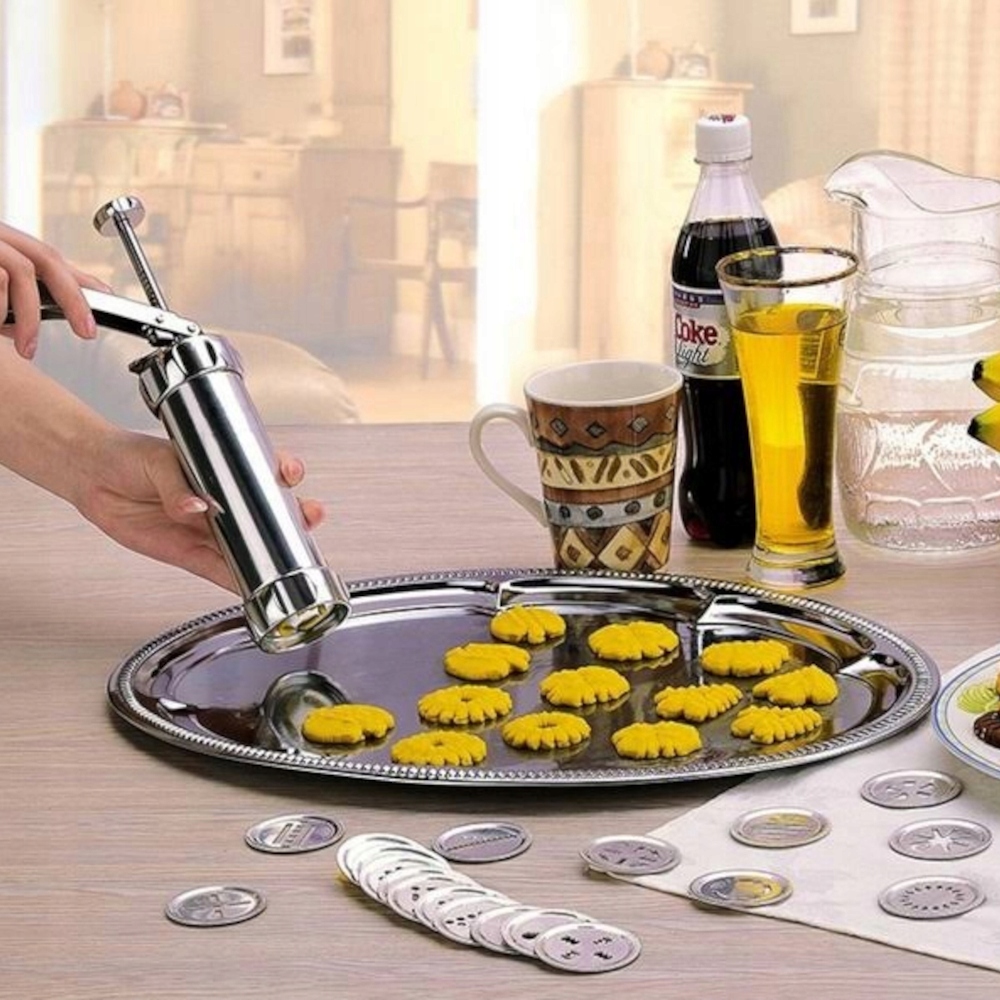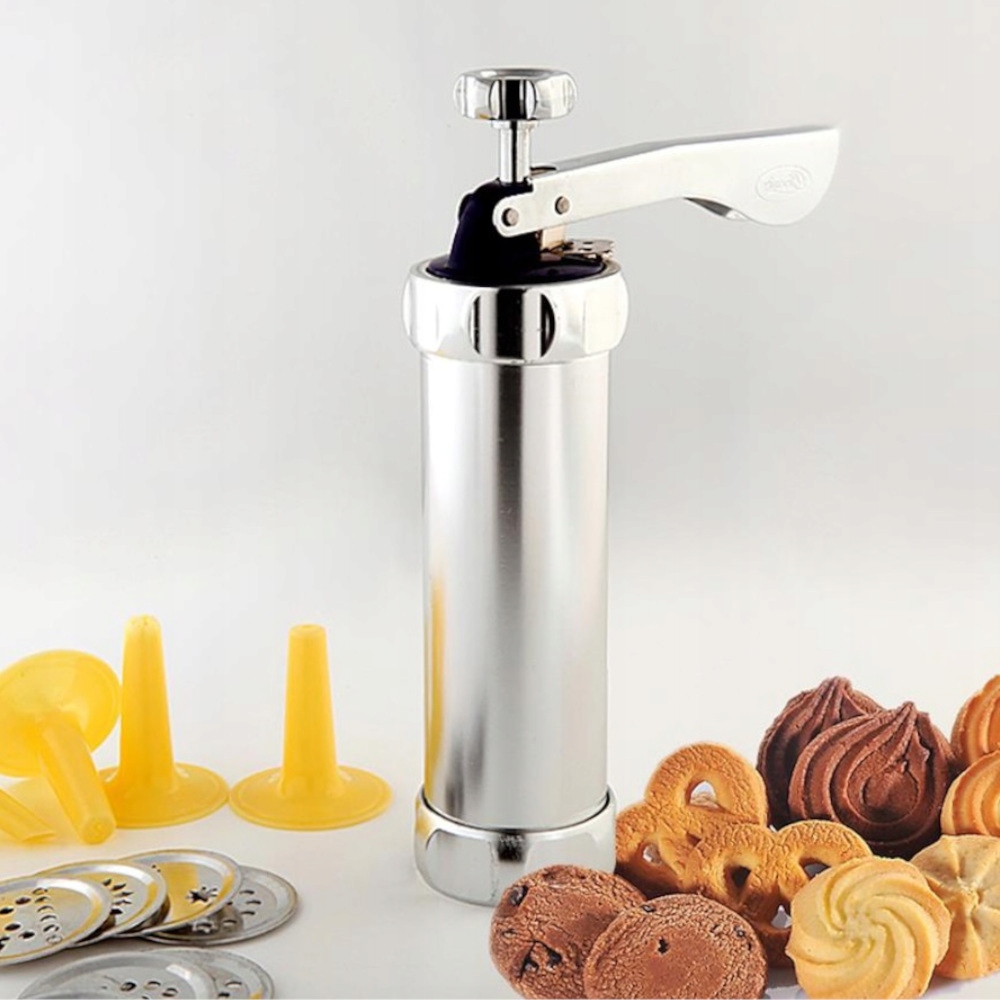 Машина для печива - це перевірений і надійний пристрій, який прискорить виробництво домашнього печива. Міцні матеріали та ретельне виготовлення шприца гарантують роки використання. Машина для печива має можливість регулювати їх товщину. Завдяки правильно сконструйованому поршню, тісто повністю переміщується в циліндрі видавлювача для печива, що усуває проблему засмічення сопла. У набір також входять 4 насадки та 20 дисків для декорування печива, тортів і тортів.