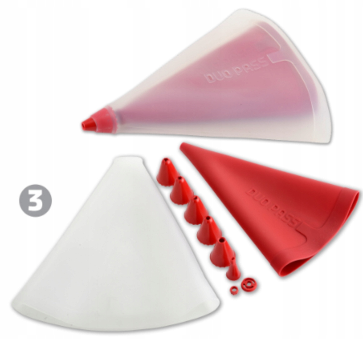 Новинка в сегменті професійних кондитерських сумок! Завдяки двом кондитерським мішкам, які лежать один в одному, ви можете обробляти два різні типи крему або тіста одночасно, таким чином створюючи начинки, яких раніше не було. Дозвольте собі надихнутися!