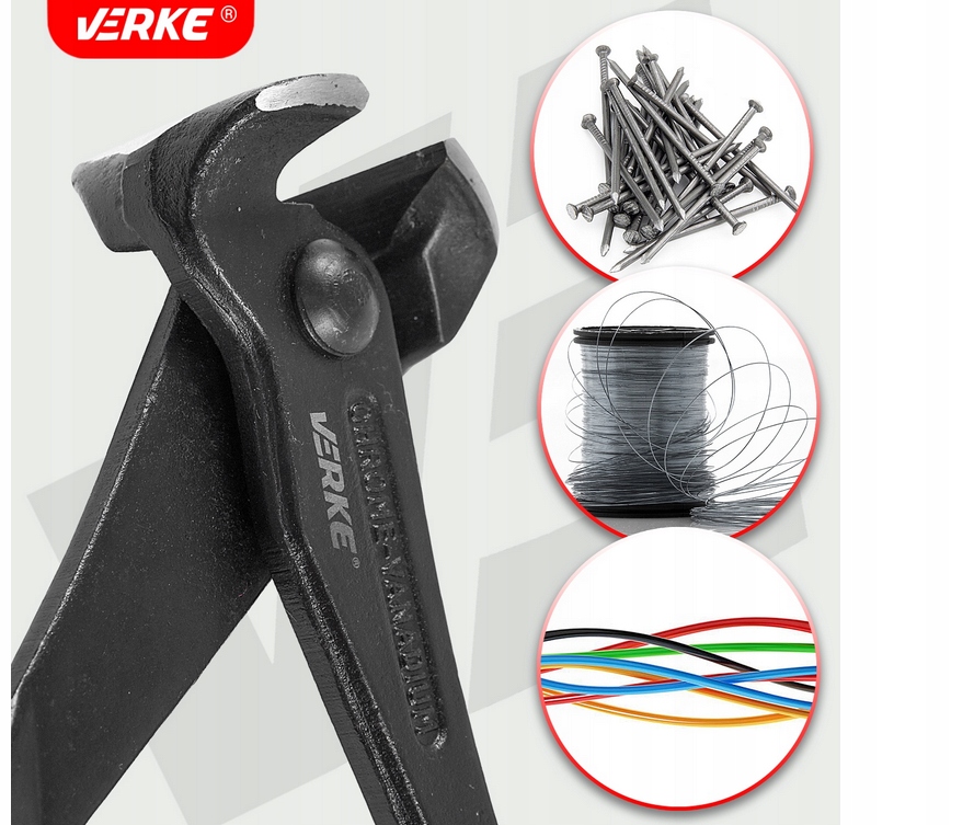 Професійні передні кусачки від Verke. Кусачки призначені для різання дроту різних класів. Завдяки жорстким лезам і відповідним важелям різати легко і не вимагає від користувача великої сили.