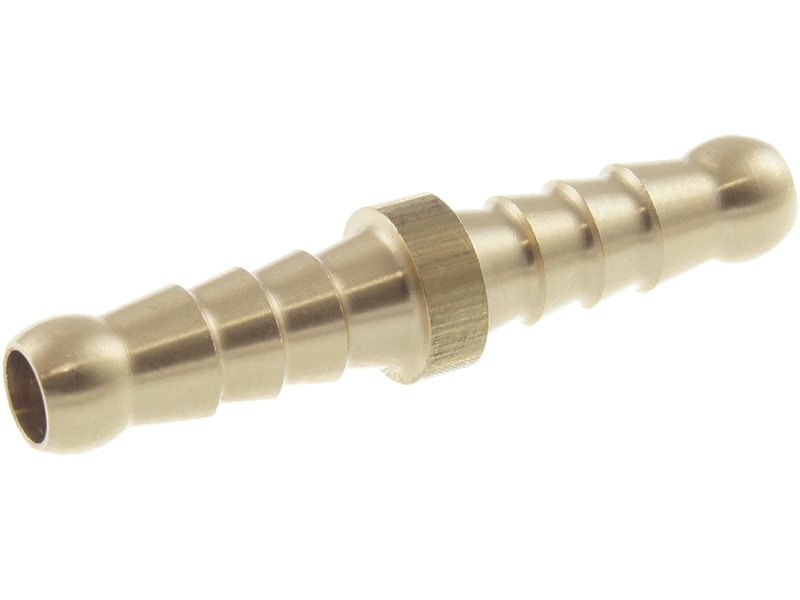 Елемент виготовлений з латуні. Стійкий до зміни температури, газу та гліколю. З'єднувач дозволяє підключати гумові шланги з внутрішнім діаметром 6 мм.