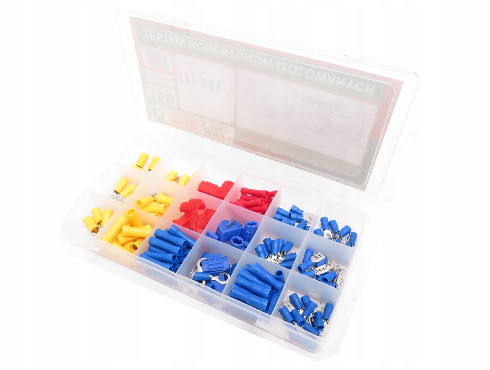 Повний набір ізольованих конекторів різних кольорів 160 шт. Елементи розташовані в пластиковій упаковці зі спеціальними відсіками для збереження порядку.