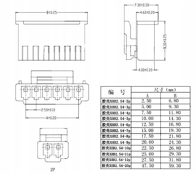 роз'єм XHB 2,54 мм із кабелем