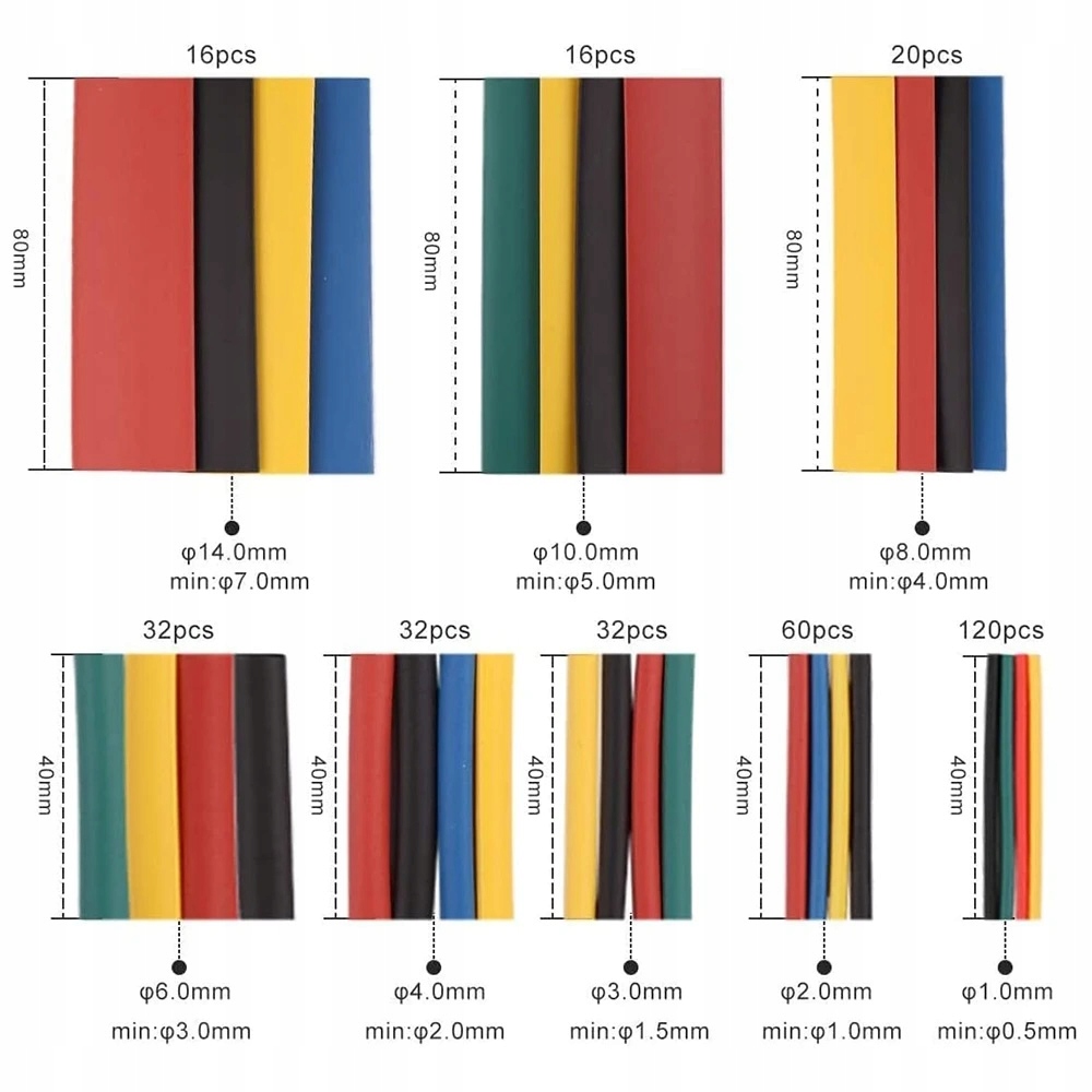 ☑️ У комплекті 328 термозбіжних трубок захищають з’єднання від вологи та пошкоджень.