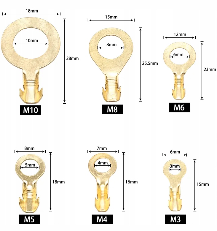 KONEKTORY NIEIZOLOWANE OCZKOWE M3 M4 M5 M6 M8 M10 ZESTAW 150 SZTUK