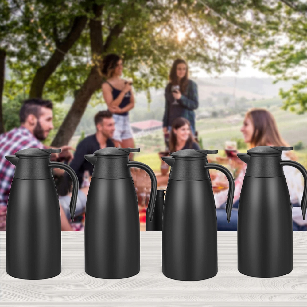 ☕️☕️☕️ 1,8 ЛІТР НАСТІЛЬНИЙ ТЕРМОС З НЕРЖАВІЮЧОЇ СТАЛІ ТЕРМОГЛЕЧОК ДЛЯ КОНФЕРЕНЦІЙ, ГЛЕЧОК ДЛЯ ЧАЮ, ДВОШАРОВИЙ ВАКУУМНИЙ ГЛЕЧОК ДЛЯ КАВИ, З НАКОПІЧЕННЯМ ТЕПЛА НА 12 ГОДИН, ЧОРНИЙ.