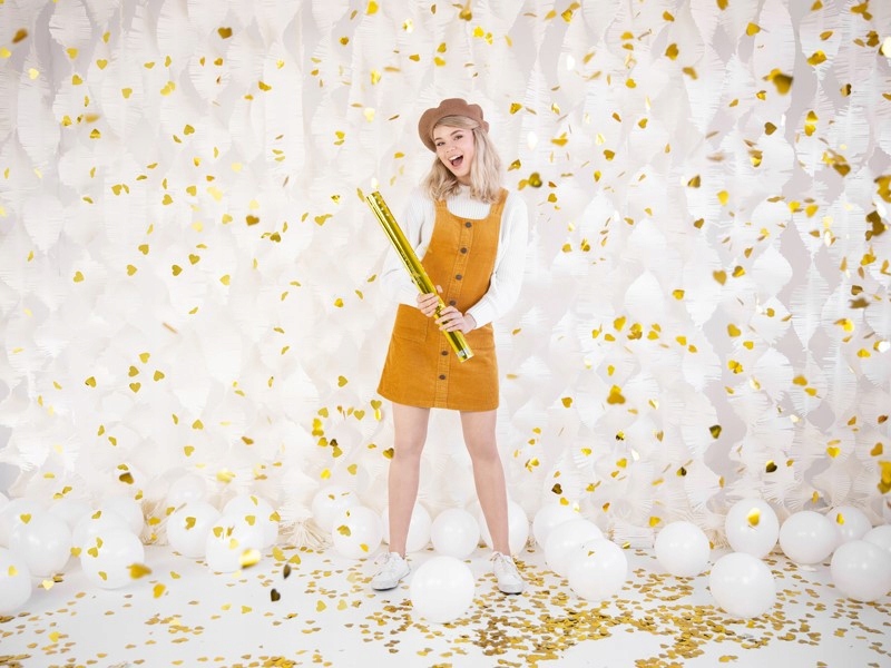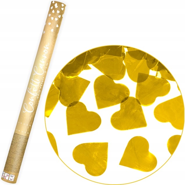 - Конфетті золоті фольгові сердечка в трубочці - після зйомки золоті фольгові сердечка викидаються з трубку вражаючим чином.< /li>