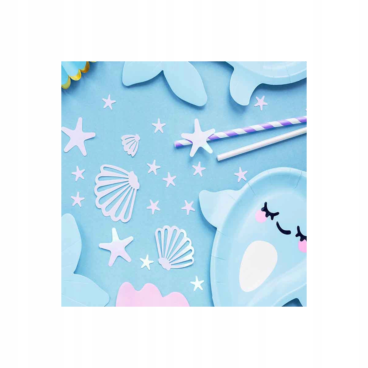 Наше унікальне райдужне конфетті у формі черепашок і морських зірок на двосторонньому скотчі — ідеальна прикраса столу, яка додає блиску та елегантності.