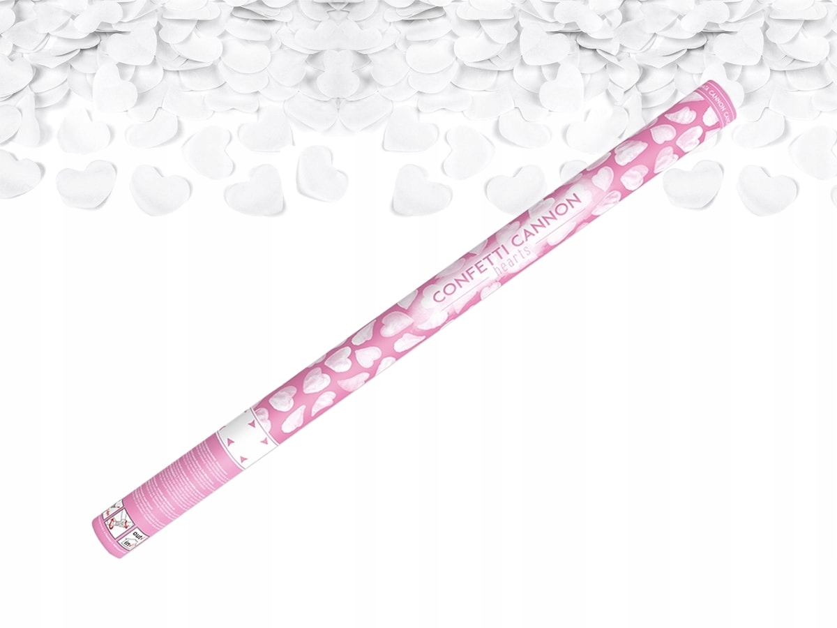 KONFETTI TUBA STRZELAJĄCA SERDUSZKA białe SERCA bibułkowe ŚLUB WESELE 80 cm