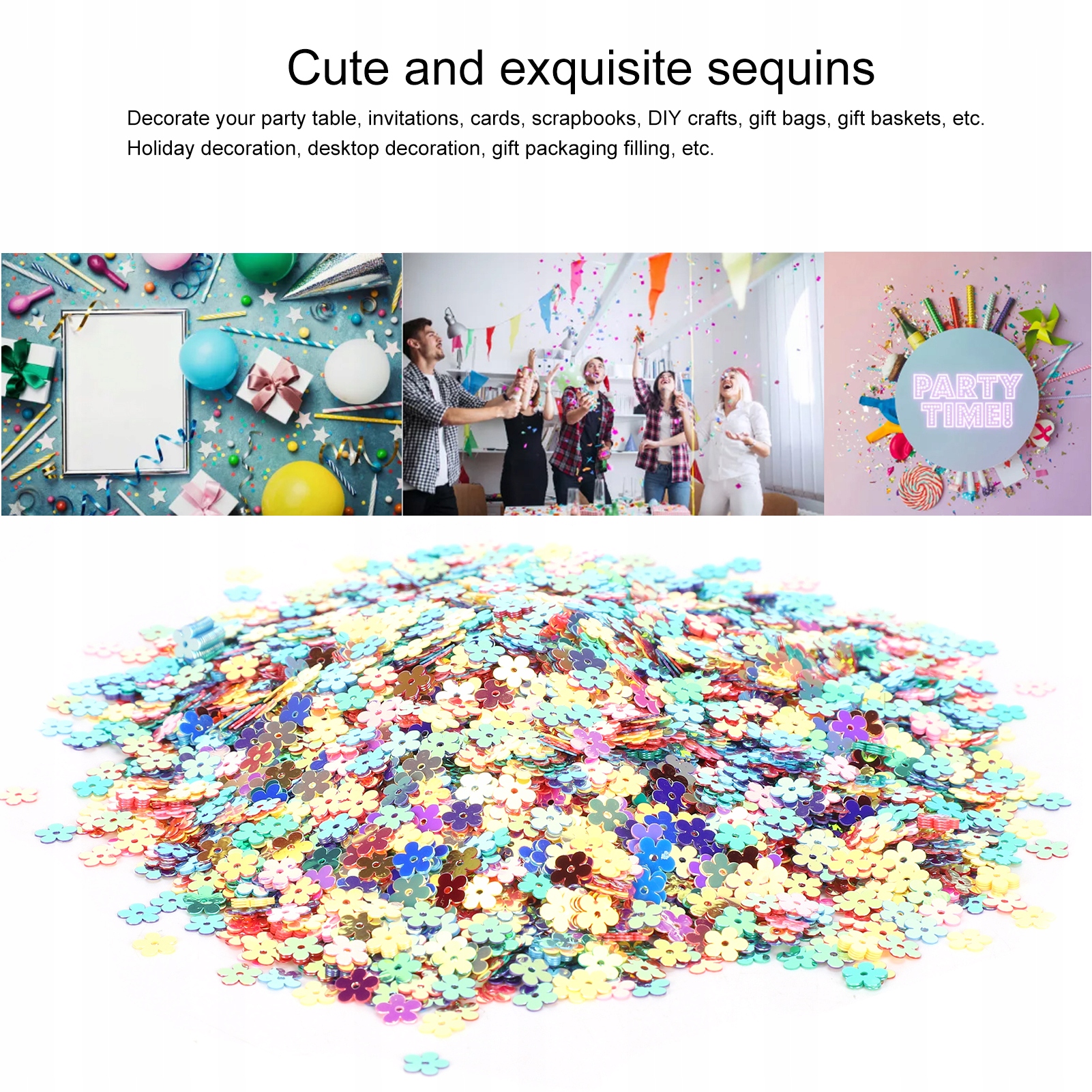 1. Ці конфетті виготовлені з ПВХ, вогнестійкі, блискучі та стійкі до кольору, гладка та блискуча поверхня. 2. Конфетті блискучі та барвисті, додають веселості весіллям, вечіркам тощо святкові випадки 3. Чарівні та вишукані блискітки можна використовувати для прикраси святкового столу, запрошень, листівок, альбомів для вирізок, виробів своїми руками, подарункових пакетів, подарункових кошиків тощо. 4. Підходять для святкових прикрас, столових прикрас, наповнення подарункової упаковки тощо 5. Ви можете вибрати дві моделі, різна форма квітки викликає різні відчуття