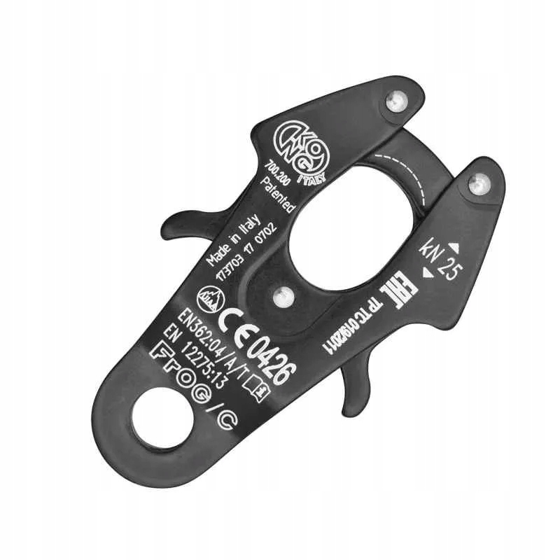 Жаба виготовлена з алюмінію та нержавіючої сталі, завдяки якому вона надзвичайно легка, оскільки важить лише 50 грам. Міцність пристрою - 25 кН. Жабний кабель відповідає вимогам EN 362 щодо використання промислового використання та стандартів EN 12275, завдяки яким він використовується у спорті. Жаба -кабель можна поєднувати з іншими карабінами завдяки отвору діаметром 11 м. Оптимальне рішення полягає в тому, щоб з'єднати Майллон з діаметром, наприклад 8 мм.
