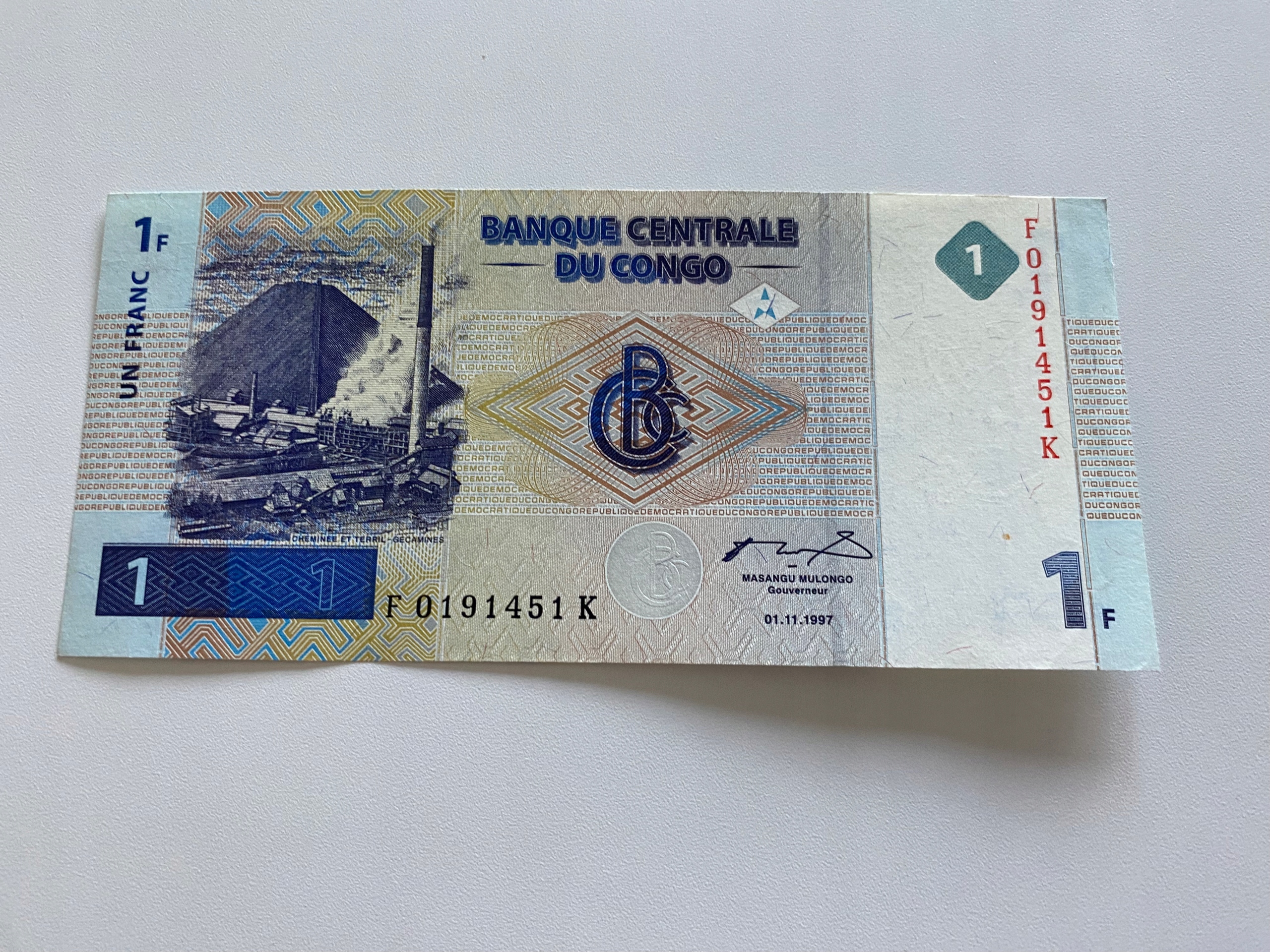 Kongo - 1 frank - 1997 - rzadki - UNC