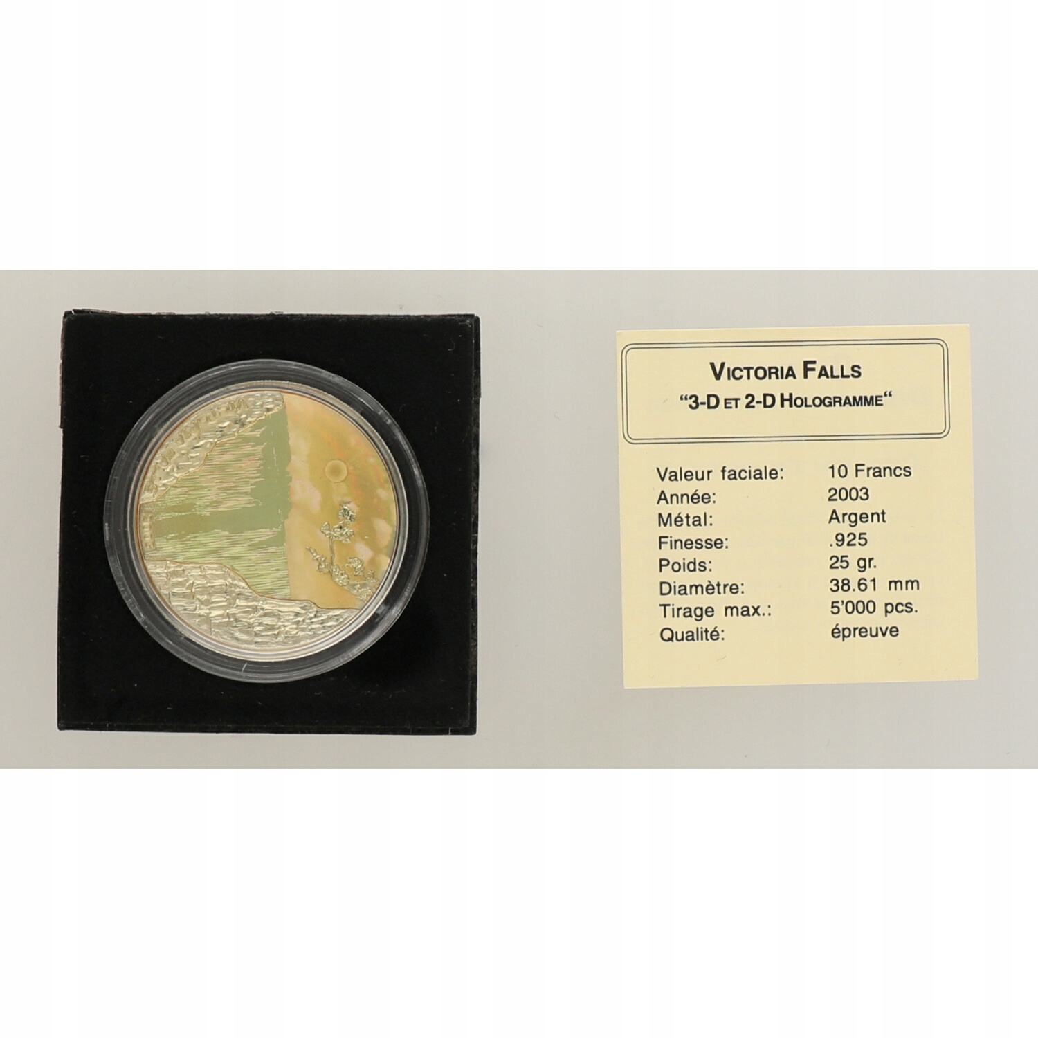 Конго - 10 франків - Водоспад Вікторія - 2003, Ag