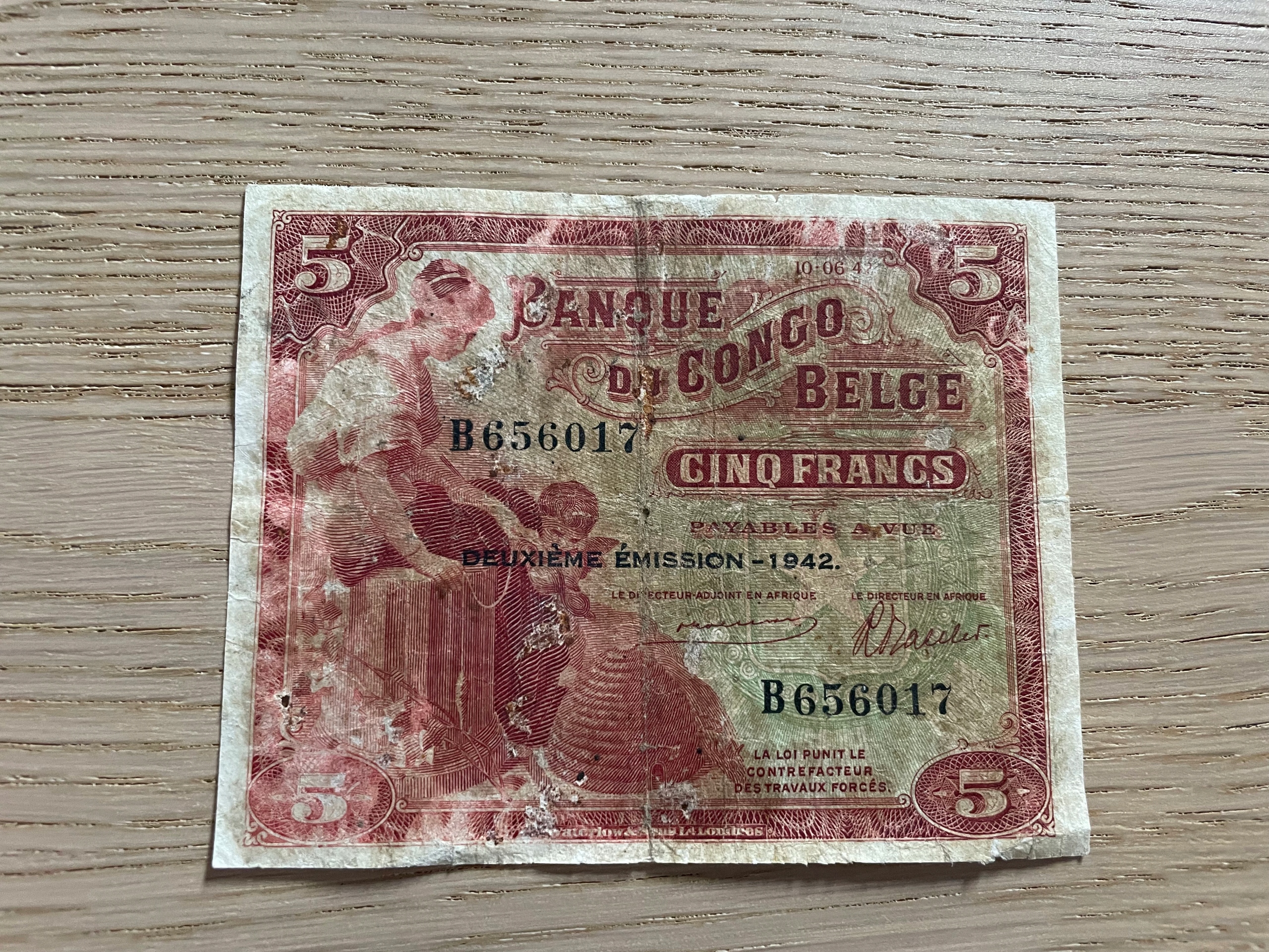 Kongo Belgijskie - 5 franków - 1942 - rzadki