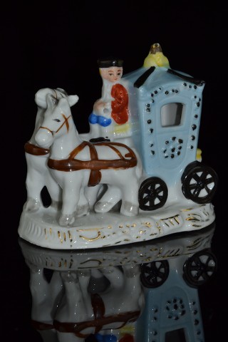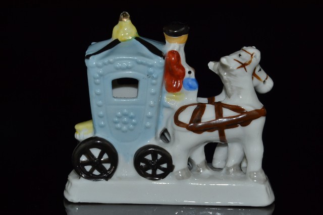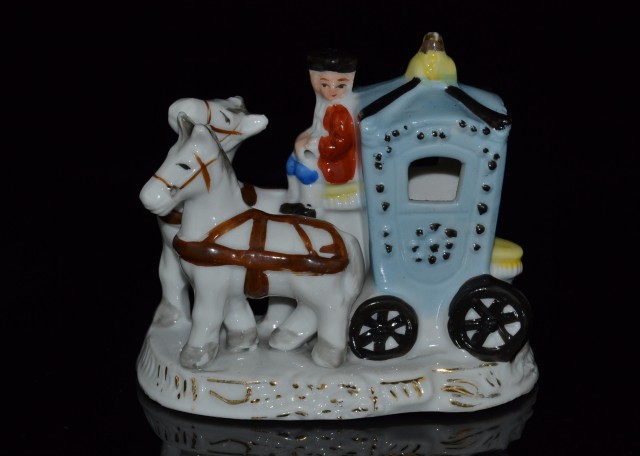 КОНІ - КАРЕТА З ФІГУРКОЮ КОНЯ / ФАРФОР