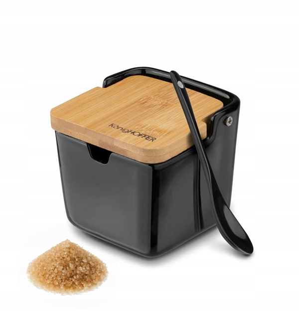 KONIGHOFFER КЕРАМІЧНА ЦУКЕРНИЦЯ 270 МЛ КРИШКА + ЛОЖКА ФАРФОРОВА ЧОРНА