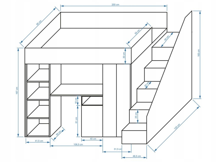 KONKRET 14 антресольне ліжко зі сходами