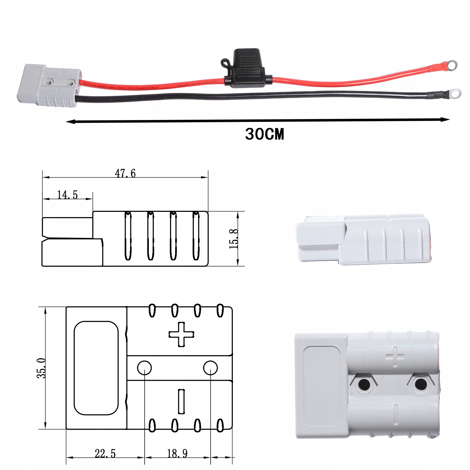 Конлектор кабелю акумулятора Anderson 30 см 50a запобіжник 50a 2 pc