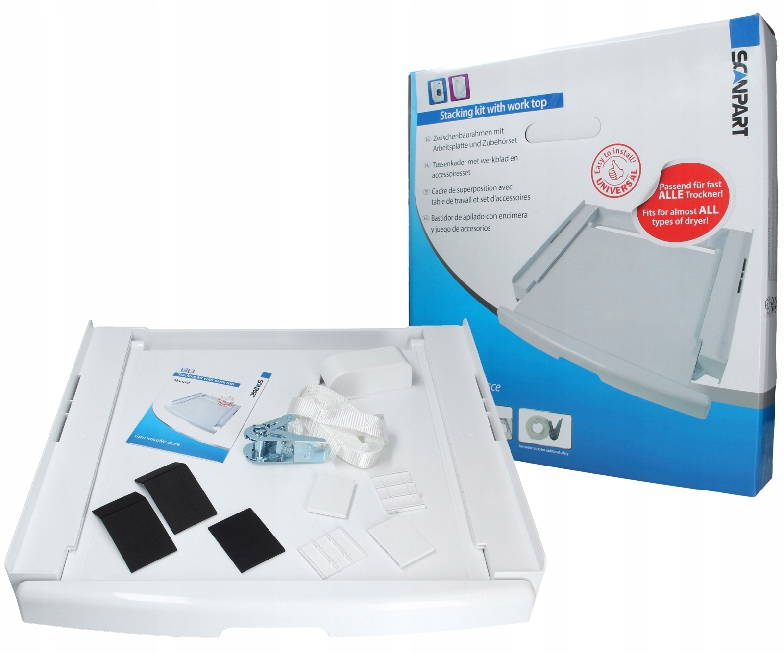 Конектор Scanpart призначений для підключення сушилки та пральної машини в колонку. Це ідеальне рішення для економії місця в будинку. Завдяки роз'єму Scanpart це підключення є безпечним і дуже практичним. Окрім оптимізації використання простору, це значно полегшує перенесення білизни з пральної машини в сушильну.