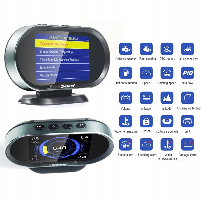 Konnwei KW206, dodatkowy komputer pokładowy+OBDII do odczytu/kasowania błędów