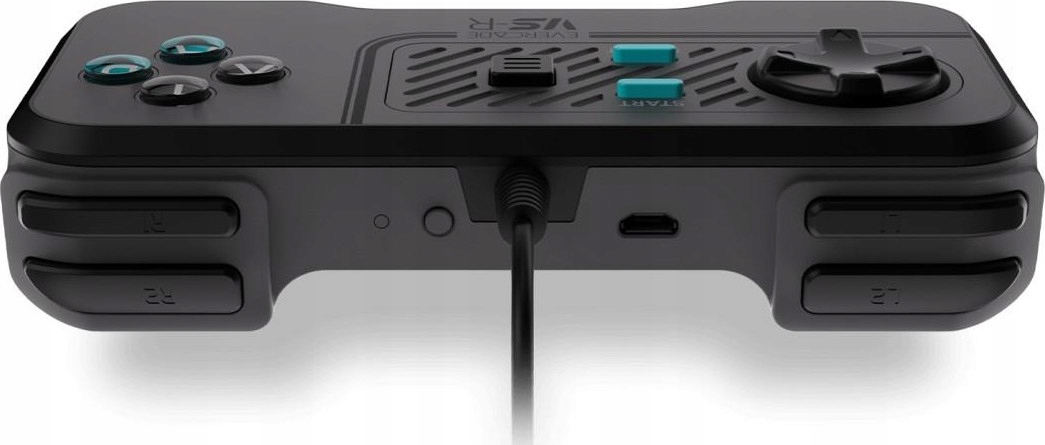Нова консоль Evercade VS-R у новому графітово-сірому кольорі з бірюзовими акцентами ідеально підходить до багатьох інших домашніх ігрових пристроїв.