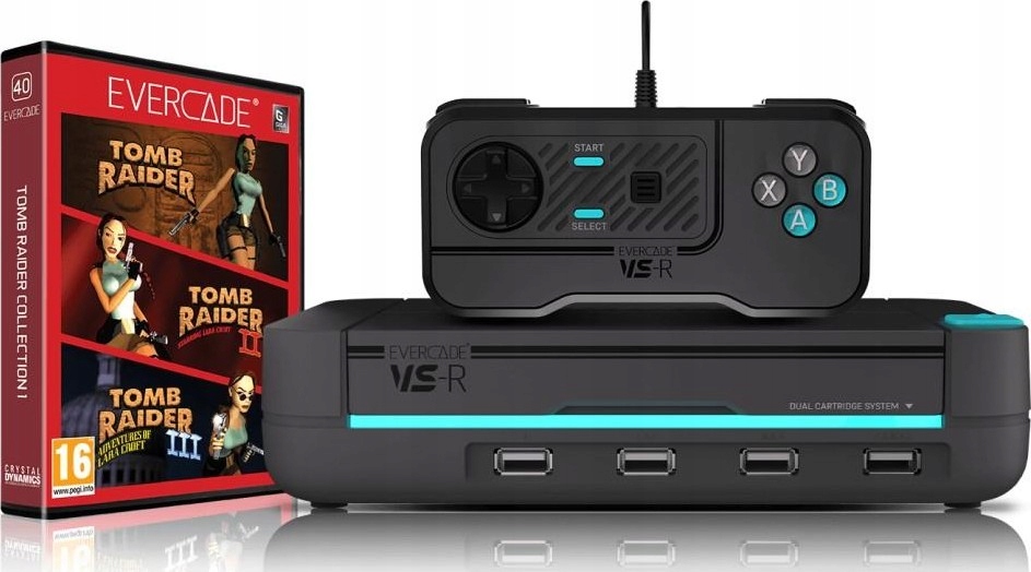 Evercade VS-Rце остання версія відзначеної нагородами домашньої ретро-консолі Evercade у абсолютно новій кольоровій гамі. Поставляється з 3 легендарними іграми Tomb Raider на одному картриджі Evercade.