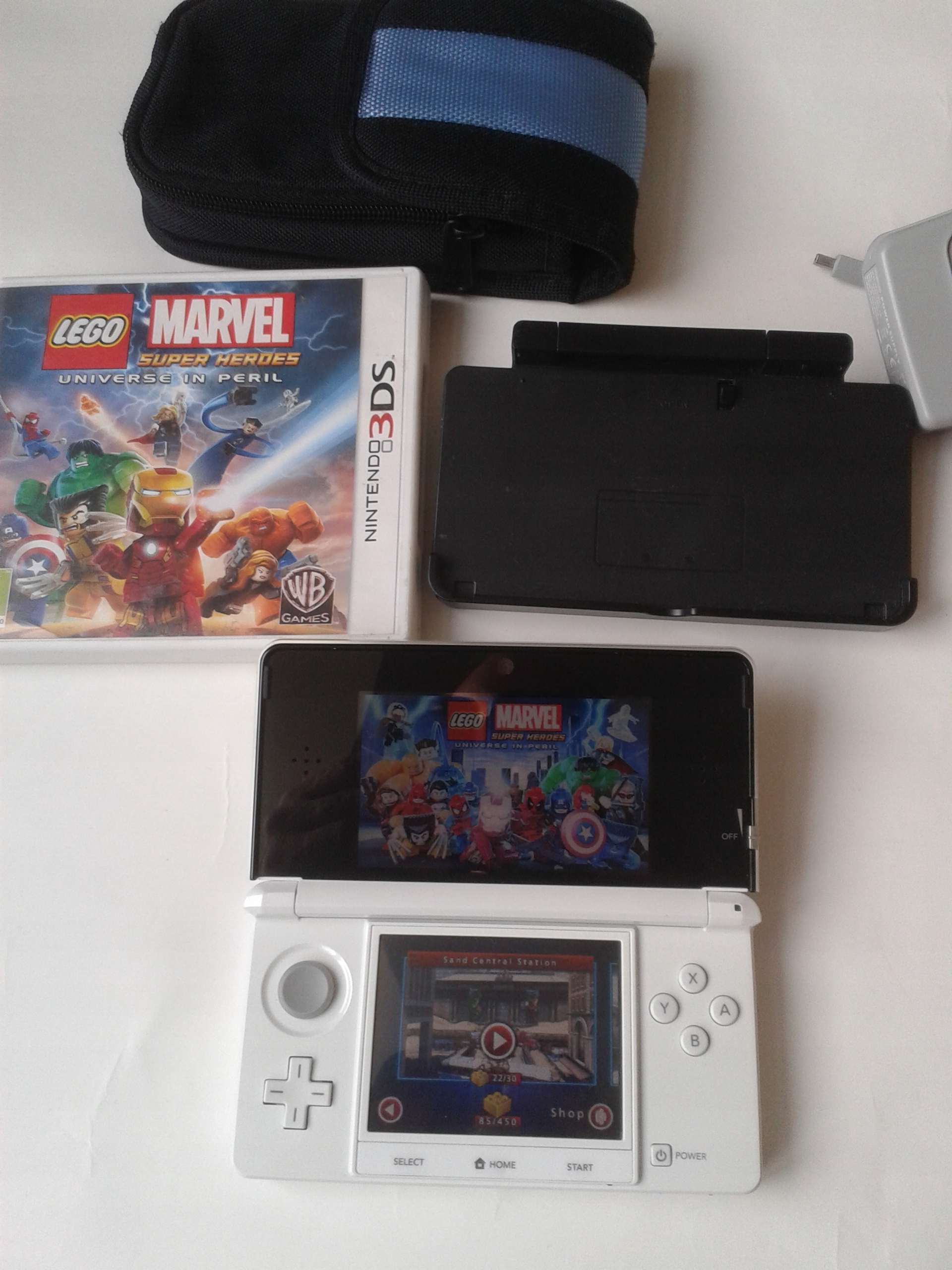 Консоль продається в наборі з зарядним пристроєм, корпусом, друкованою станцією та грою